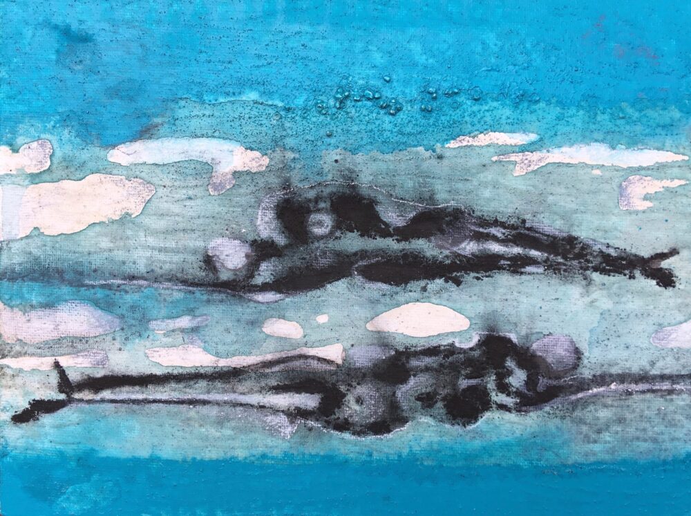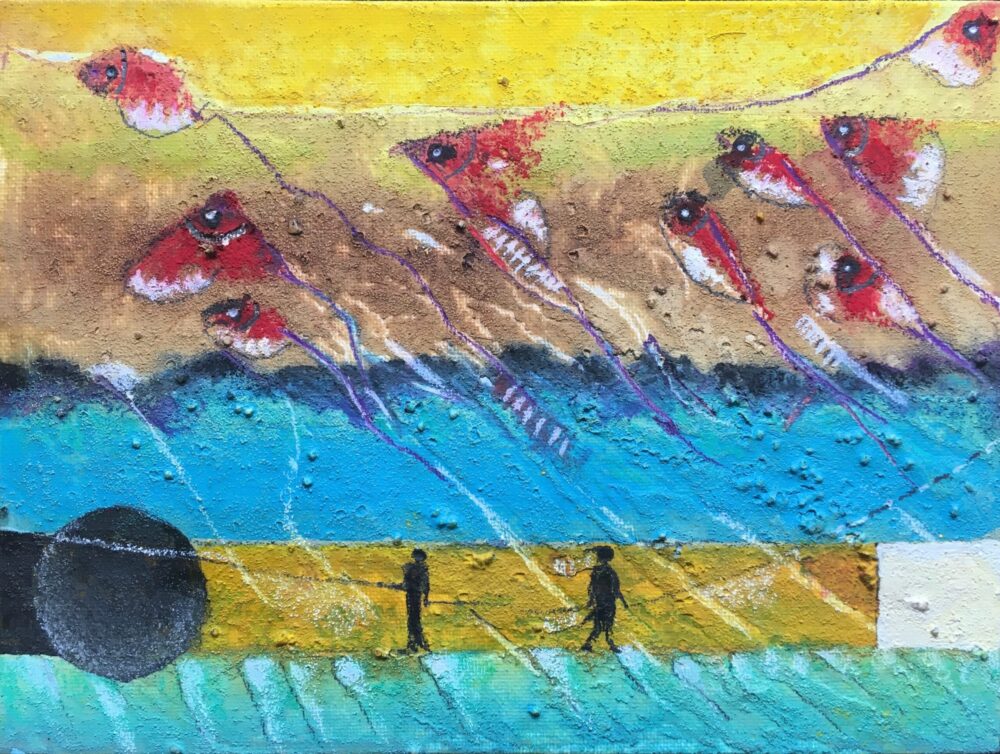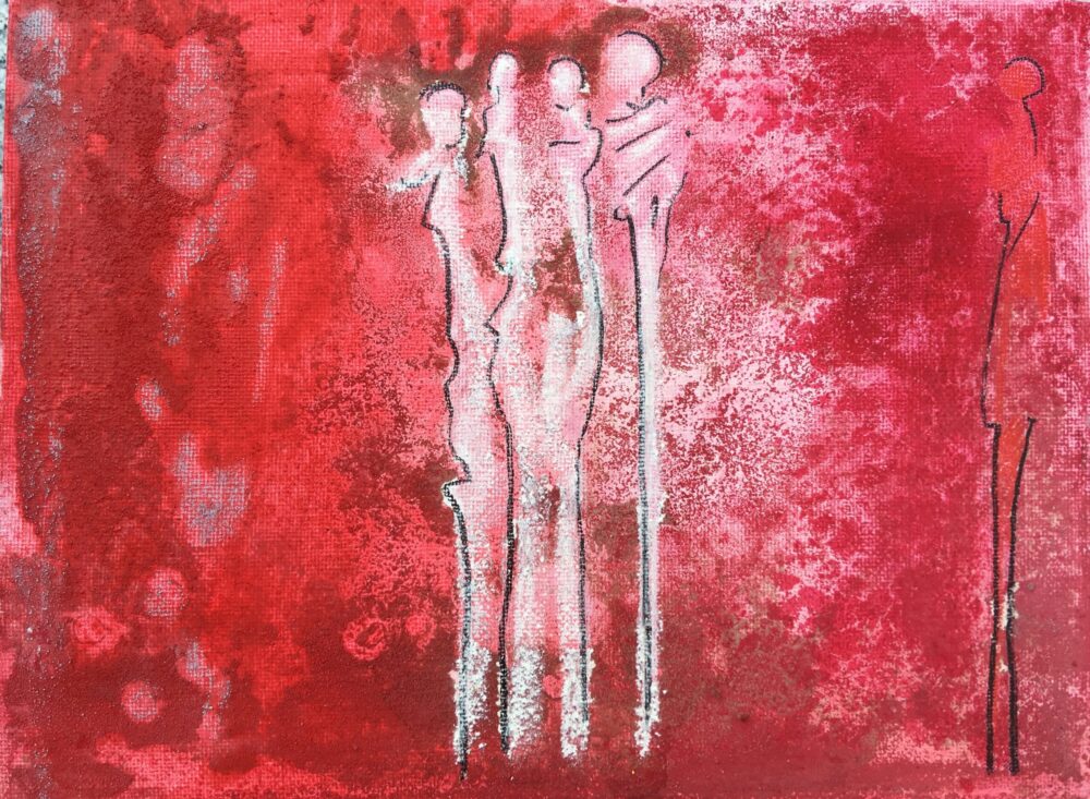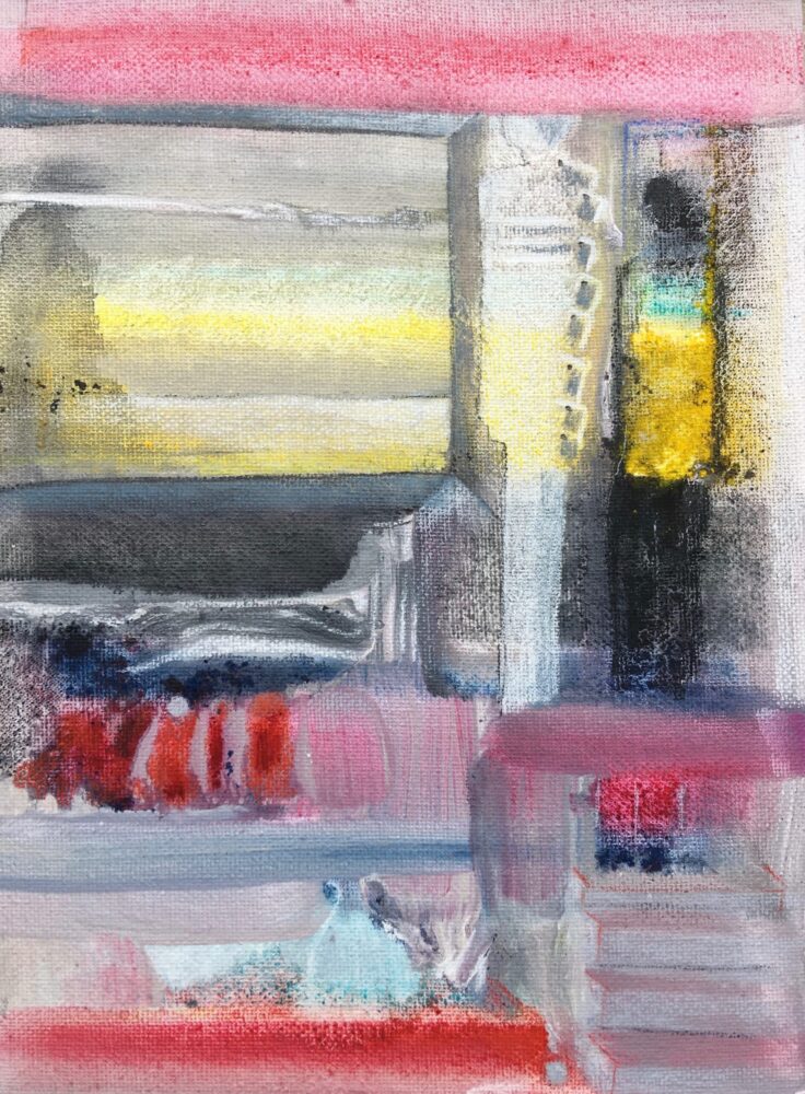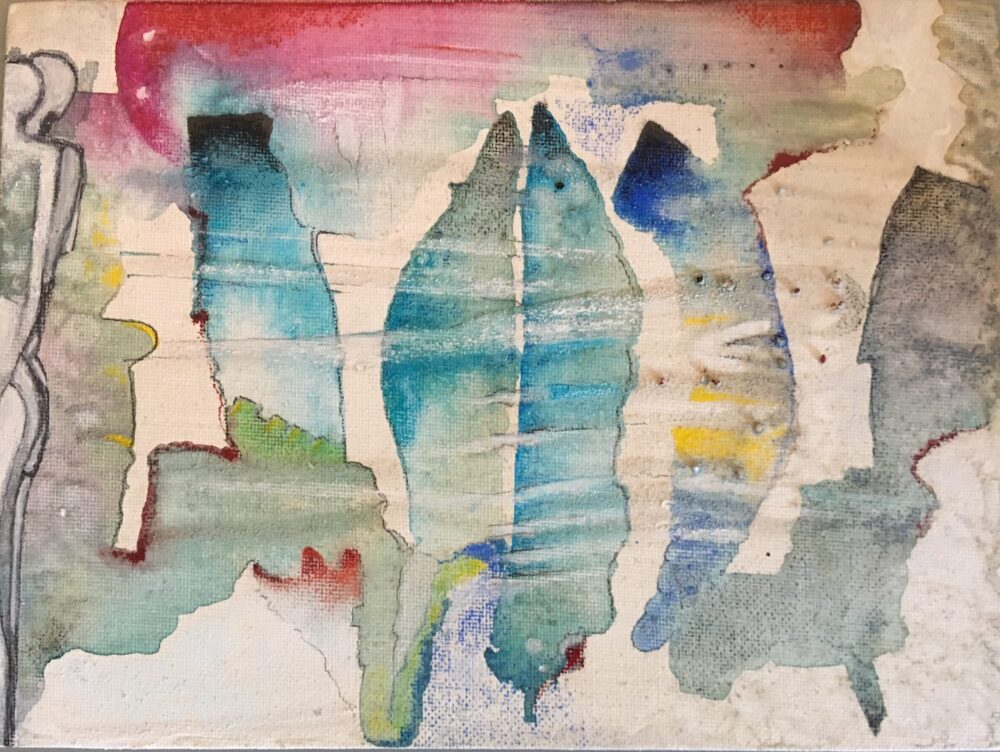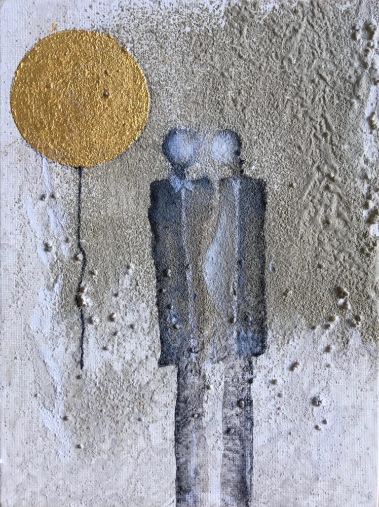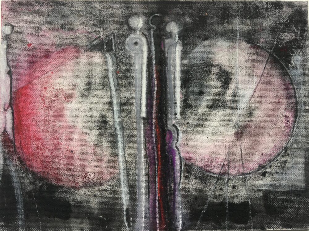 Miniatur ohne Titel Nr. 130 (Baby, heute gibt es Fisch) 24 x 18 cm Mit Beton grundiert. Acryl, Pigmentfarben auf Malpappe Burgfestspiele Bad Vilbel 2019