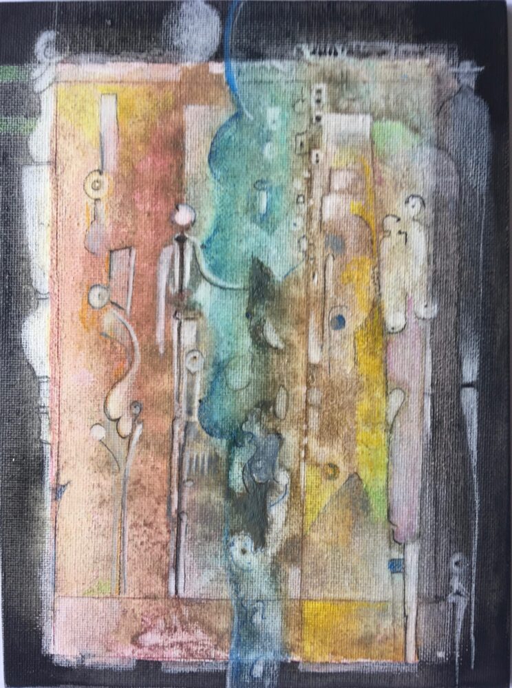 Miniatur ohne Titel Nr. 132 24 x 18 cm Acryl, Pigmentfarben, Blattgold auf Malpappe Burgfestspiele Bad Vilbel 2019