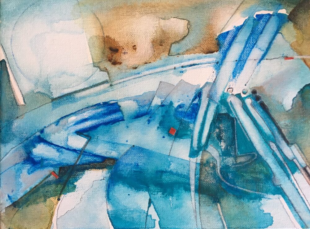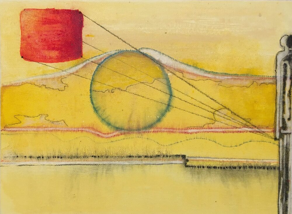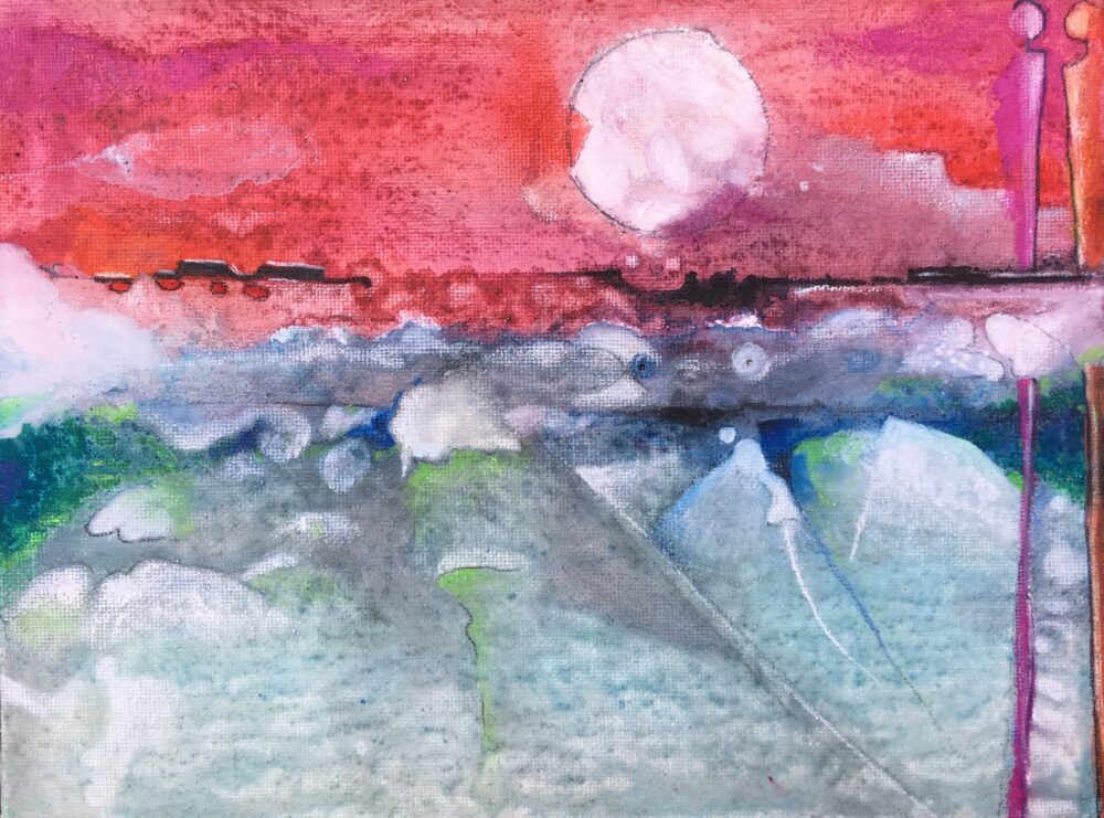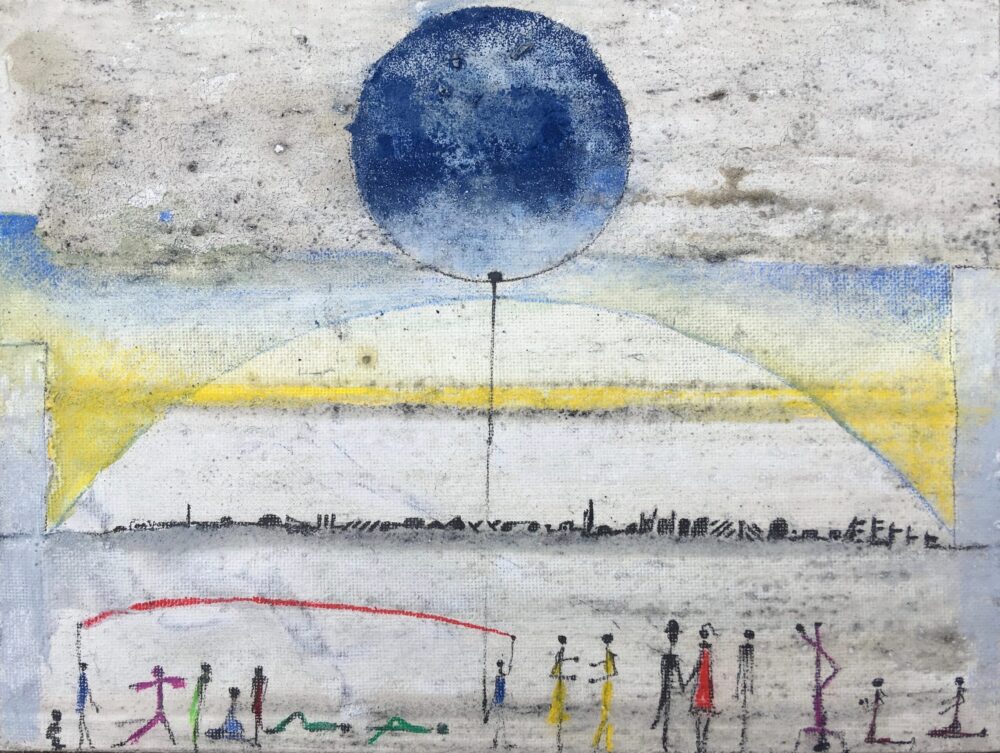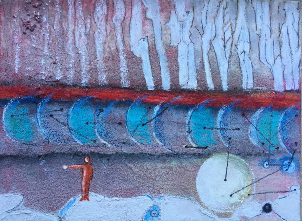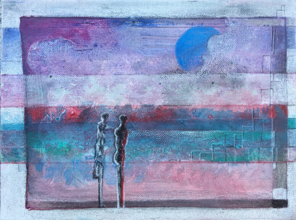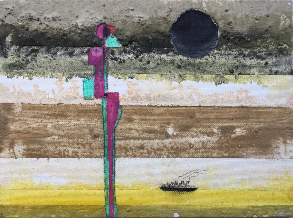 NachträglicheMiniatur ohne Titel Nr. 131 E la nave va – Und das Schiff geht 24 x 18 cm Mit Beton grundiert. Acryl, Pigmentfarben auf Malpappe Burgfestspiele Bad Vilbel 2019 aufnahme Gemalt 9.7.19