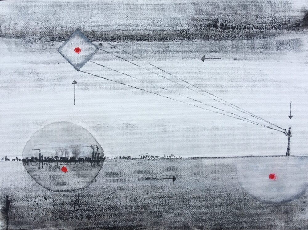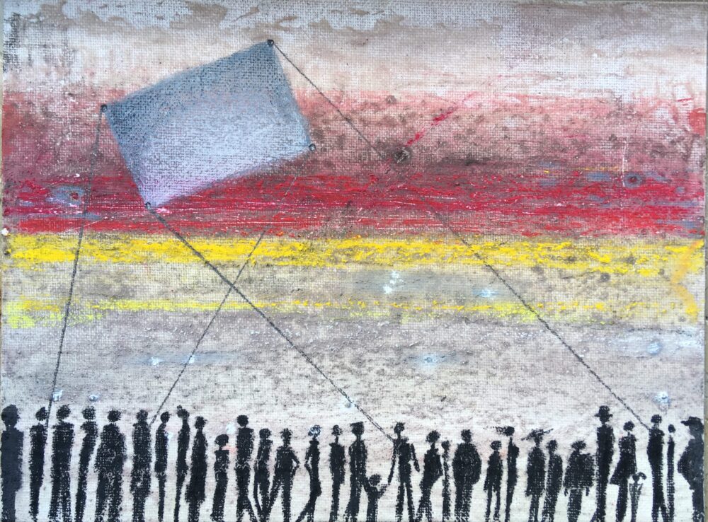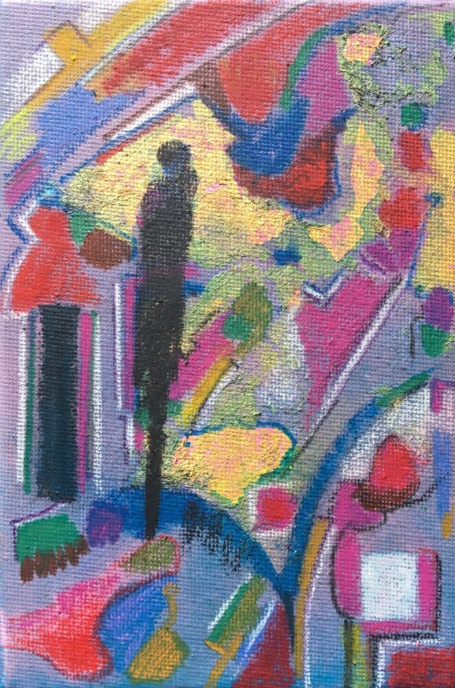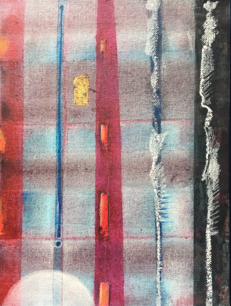 NIDDOISE 22 2019 Klassische Postkartengröße Pigment und Acryl auf einen Restfetzen Bühnenbild Folie