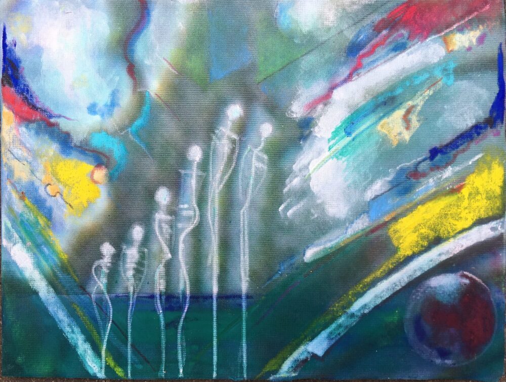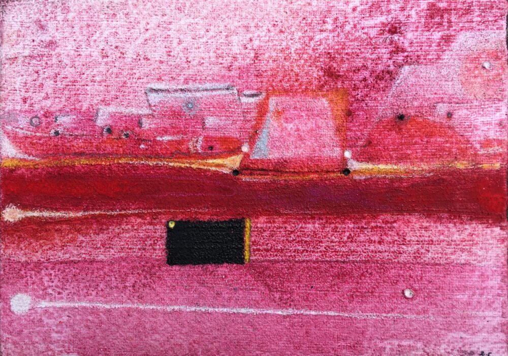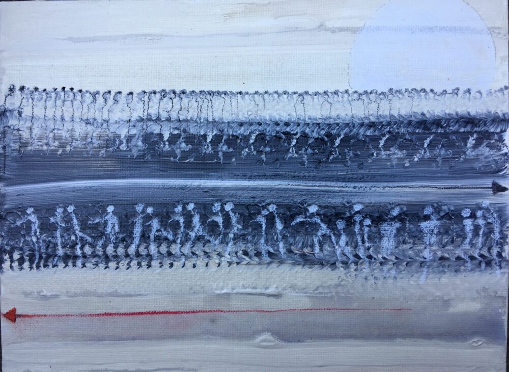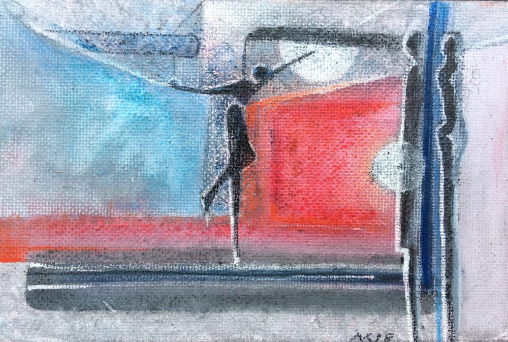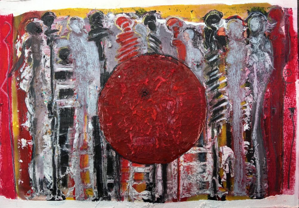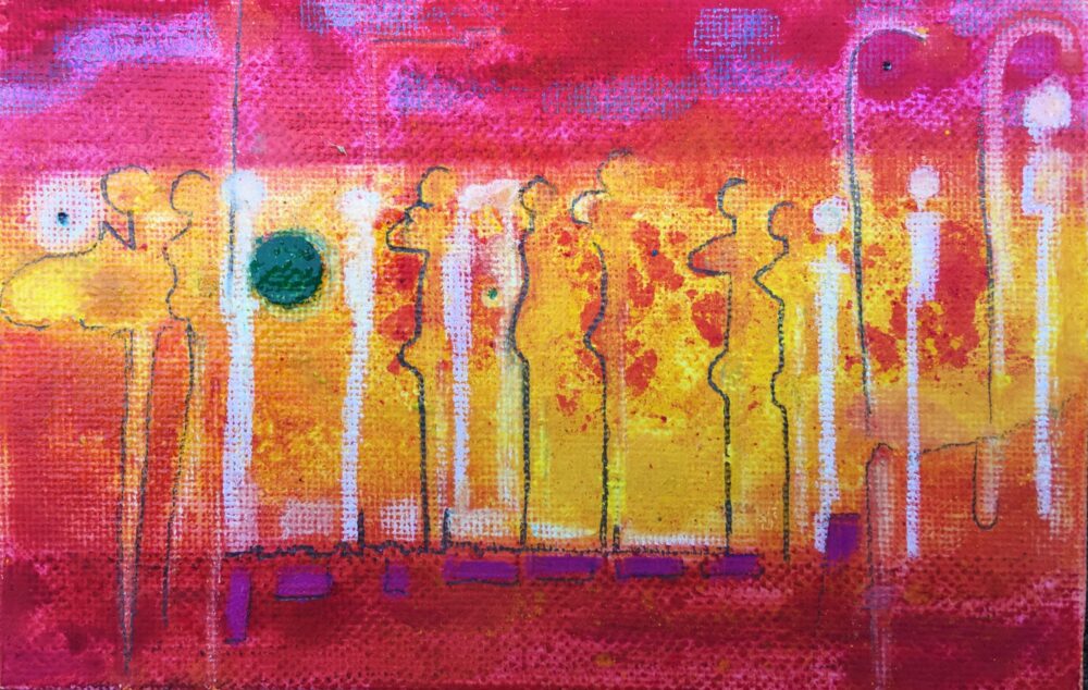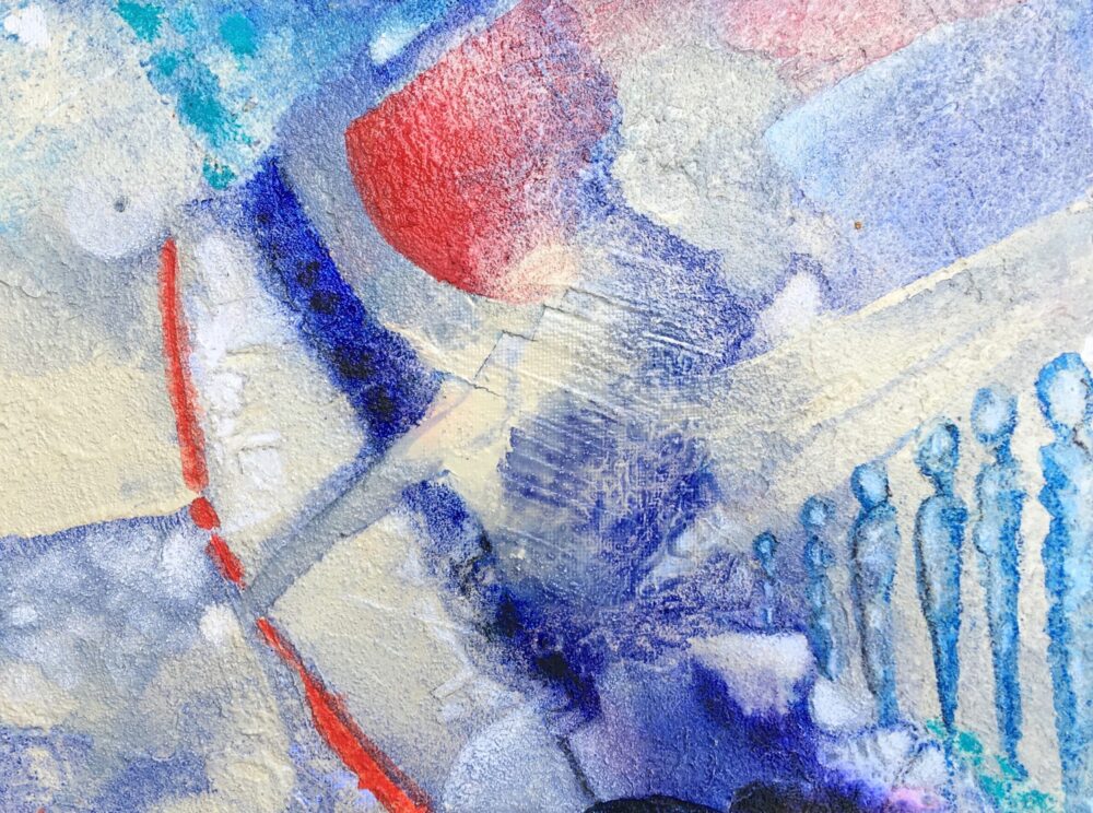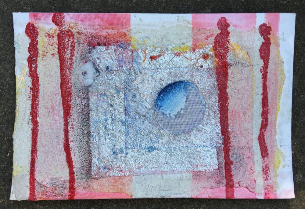 Traködie Nr. 7 auf Malpappe 24 x 18 cm Acryl, Pigmentstifte und Gouache, gespachtelt.