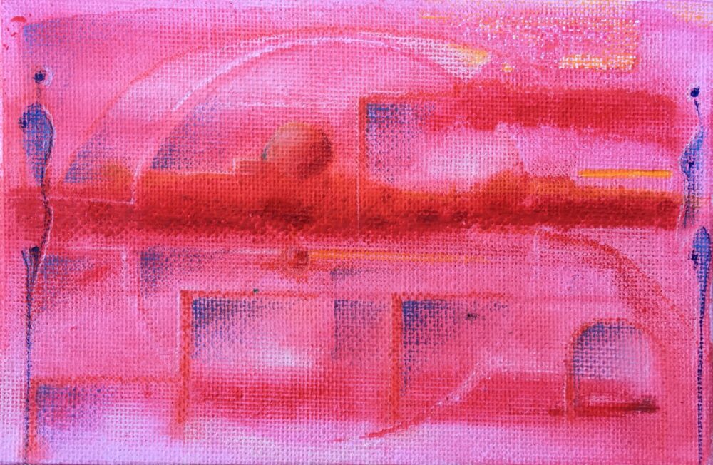 Miniatur Nr. 119 / ohne Titel Klassische Postkarte mit Schnur, Pastellgrundierung, Pigmentfarben. Burgfestspiele Bad Vilbel