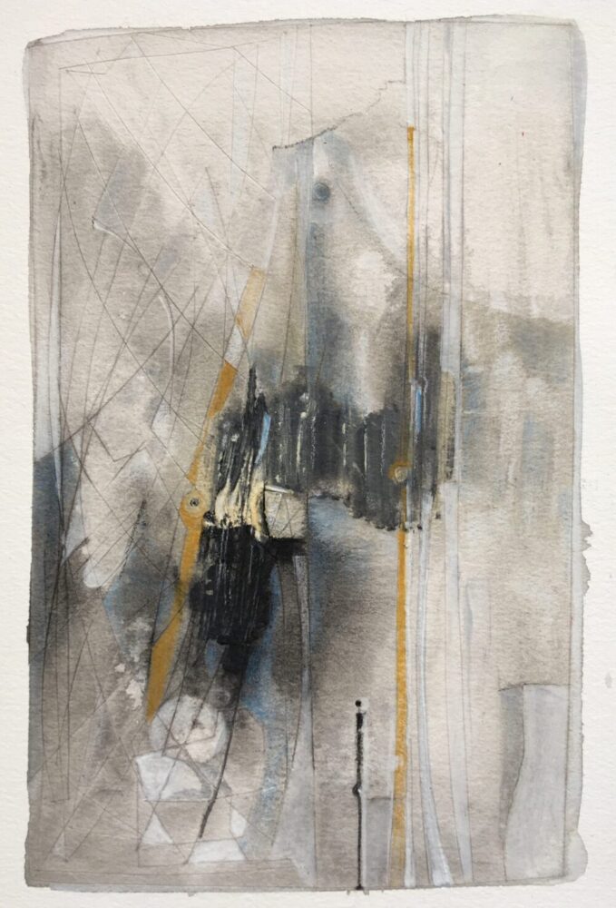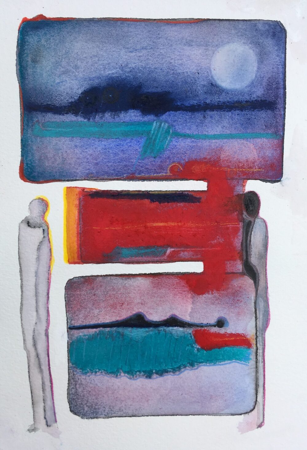 * Traködie Nr. 13 Gouache, Pigmentkreide, Bleistift auf Malpappe. 18 x 13 cm