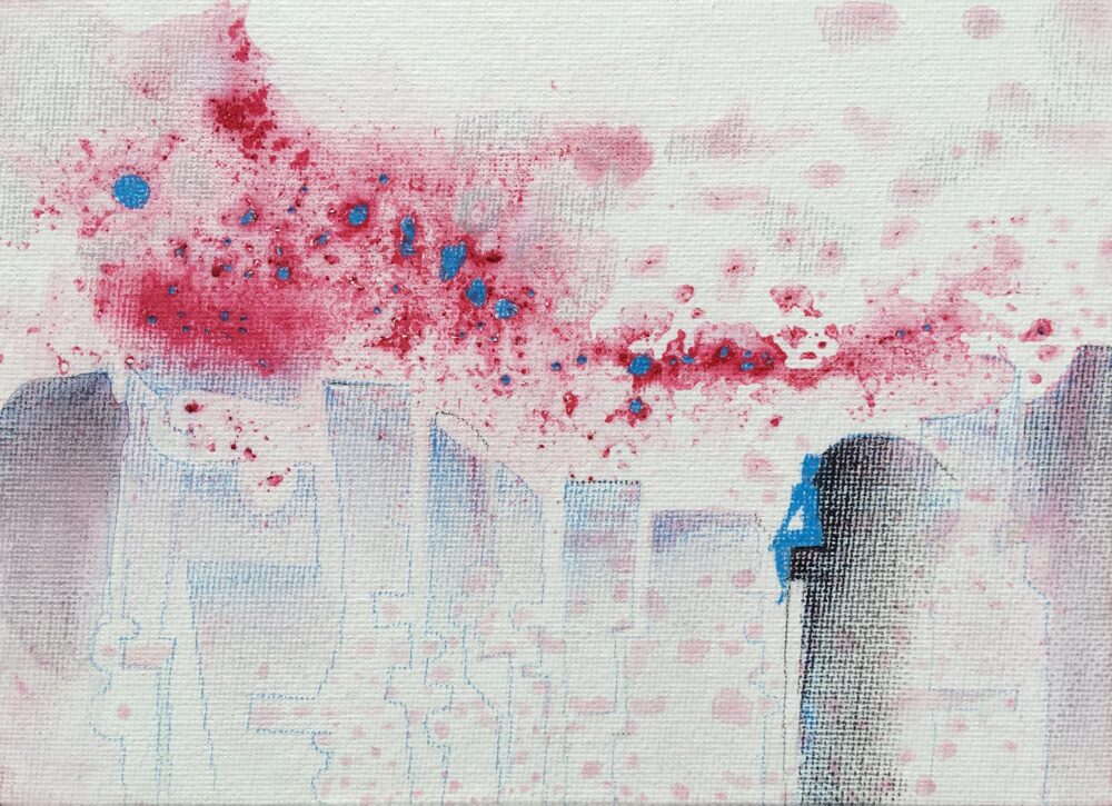 Traködie Nr. 22 Vor der HP l AUSSER KONTROLLE Pastelmasse gespachtelt, Bleistift, Pigmentstifte. 26 x 18 cm