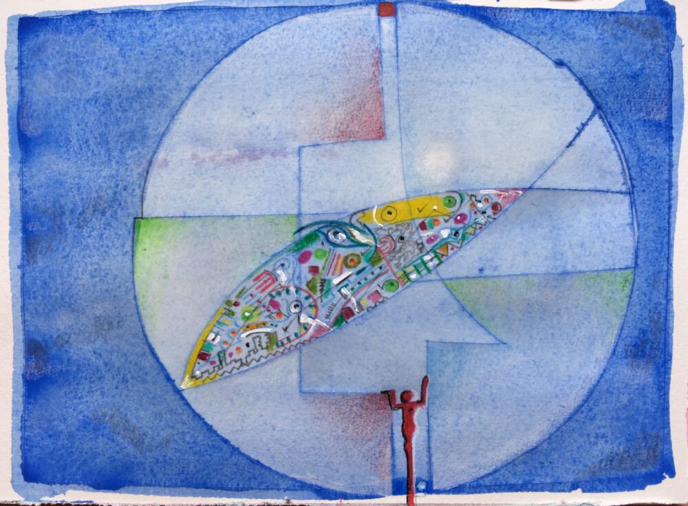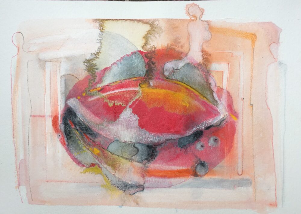 Traködie Nr. 6 auf Schwerem Büttenpaper / 24 x 18 cm Acryl, Pigmentstifte und Gouache.