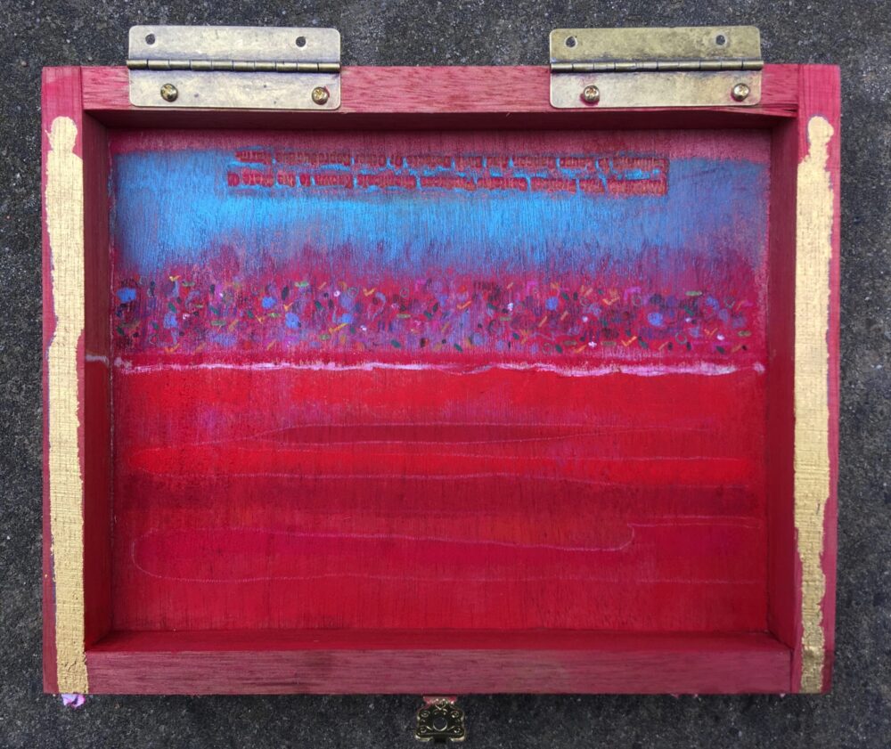 Traködie Nr. 39 in eine Alone einer noblen Zigarren Kiste. (Zedern Holz) Pastellgrundierung mit Acryl und Pigmentfarben und Blattgold.