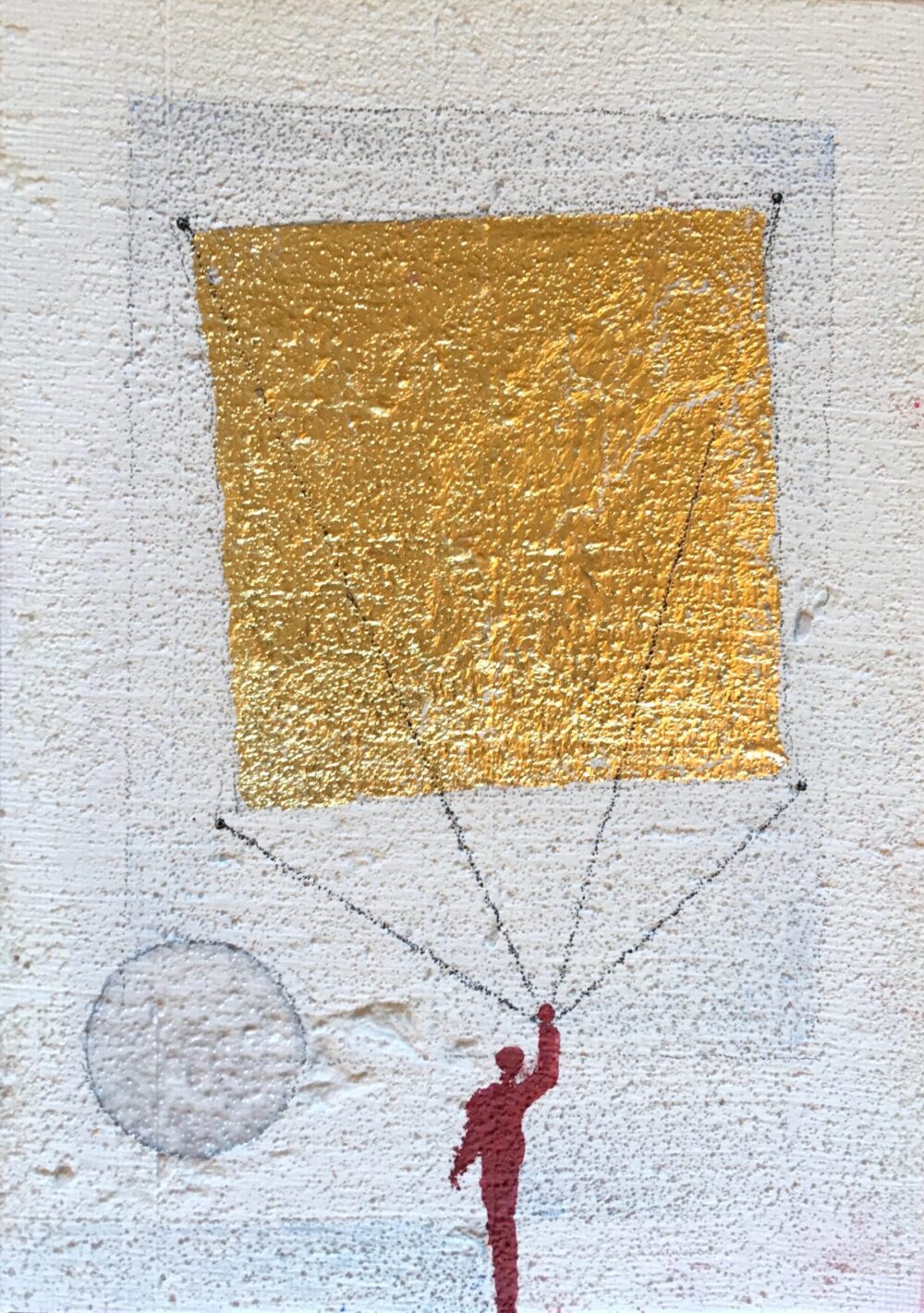 Traködie Nr. 8 auf Malpappe / 20 x 30 von Blattgold, Acryl, Spachtel Masse, Pigmentstifte und Gouache.